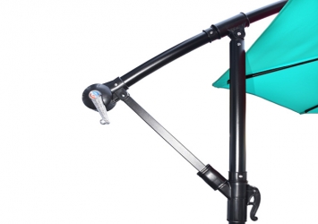 This practical model reaches easily over an outdoor dining table, sofa seating set or series of lounge chairs without having the post get in the way.