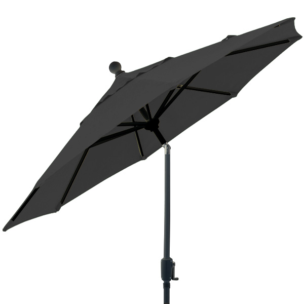 Includes a 4 year warranty on the fabric and 1 year on the Treasure Garden aluminum structure • 6 foot market style tilting black balcony patio umbrella