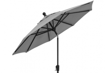 A very well made silver grey market umbrella featuring simple push-button tilt and easy crank to open functions. Makes almost any small space possible to shade. Manufactured by Treasure Garden with a 4 year warranty against the fabric discoloration and 1 year on the aluminum structure. Weighted base is available, but sold separately as an option with added price.