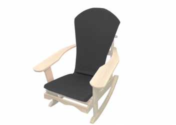 Black Adirondack chair cushion. The comfortable foam padding is 1 inch thick. This unique cushion also features fabric string ties on each side to fasten your cushion securely to your chair. It will fit our standard and rocking Adirondack chair models, as well as the greater majority of Adirondack chairs sold on the market. Made in Canada. Chair sold separately.