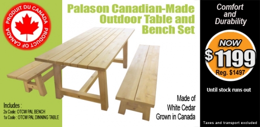 Canadian white cedar wood outdoor dining table with a simple classic yet modern look. Because of its natural resistance to the elements, insects and mold this table will offer a very good longevity. You can also stain, varnish or paint it to your liking. Price indicated is for the table only. You can pair this table with aluminum chairs, wood chairs or wood benches that are sold separately.