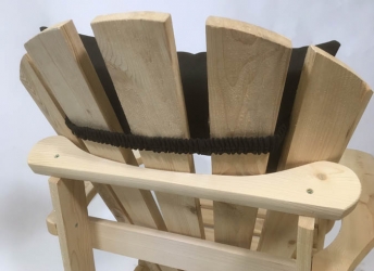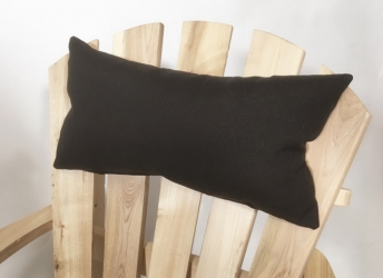 Black lumbar support or head pillow for outdoor Adirondack chair. For an even more relaxing and comfortable outdoor living experience, just slip-on this very easy-to-use comfortable neck/head pillow on to the back of almost any wood or synthetic Adirondack or Muskoka style chair model. The extendable elastic fabric covered band, fits most chair models on the market.