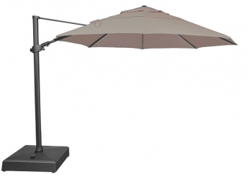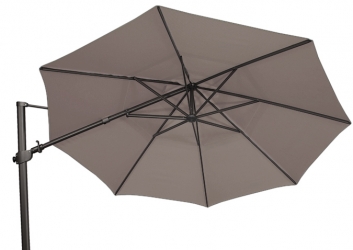 Large 350cm ( 11 foot ) Taupe Beige offset octagonal patio umbrella by Treasure Garden made with quality components. Includes a protective cover, a 4 year Treasure Garden manufacturer warranty on the UV protected fabric and 1 year on the aluminum frame structure that won't rust. Many options of mounting systems and weighted bases are available and sold separately based on your requirements and intended installation surfaces.