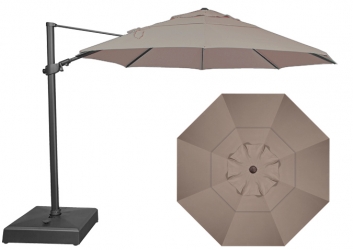 Large 11 foot Taupe Beige offset octagonal patio umbrella by Treasure Garden