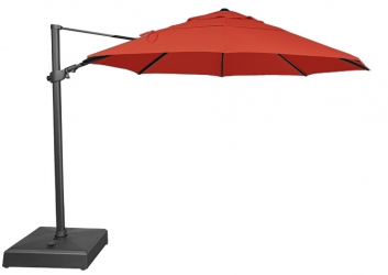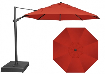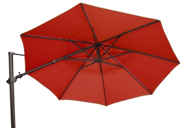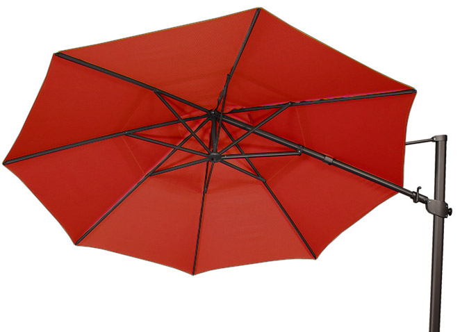 Includes a 4 year manufacturer warranty on the fabric and 1 year on the aluminum frame structure • Large 11 foot red offset octagonal patio umbrella by Treasure Garden