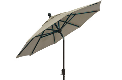 Quality taupe beige 274.32 cm ( 9 foot ) outdoor furniture and garden patio umbrella, made by Treasure Garden. This stylish neutral and contemporary looking parasol features an easy-to-use auto-tilt articulation and manual crank type mechanism that needs minimal effort to tilt open and close. The top is vented to reduce the risk of damage by strong gusts of wind. It has a classic, durable aluminum frame. Weighted base sold separately. Two (2) year warranty on the frame structure and four (4) years against the discoloration of the Treasure Garden O'Bravia ® fabric.
