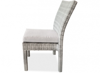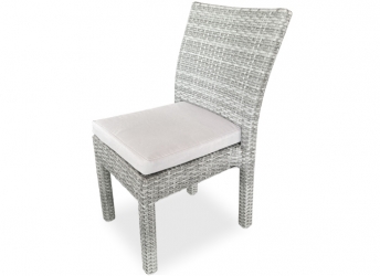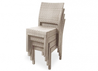 Sofia Stone grey chair for outdoor dining table. This narrow model made of aluminum and synthetic wicker by Ogni, will allow you to place a few more tables around your Ciro outdoor dining table and other models. Includes a 2 year manufacturer warranty on the aluminum structure that won't rust and the realistic UV protected synthetic wicker. As shown in photos, these chairs are stack-able but the price is set per chair.