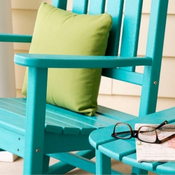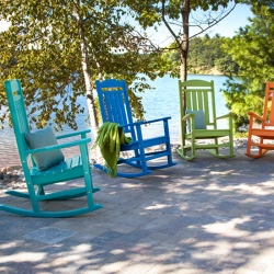 White Polywood Presidential recycled plastic Muskoka Adirondack rocking chair. Manufactured with 99% repurposed plastic to minimize the environmental impact and carbon footprint but with a 20 year manufacturer warranty by the reputable Polywood company. These products have been time-tested on the market since 1990. Stain, corrosion, chip, peel and weather resistant. Easy to maintain and clean with a simple dish soap and water solution. Available in a multitude of colours.Price shown here is for this model in White. Prices for other colours may vary.