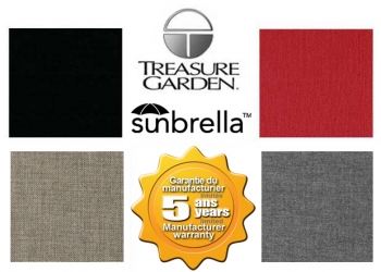 Un modèle unique et pratique, ce parasol rectangulaire gris mesurant 305 x 397 cm ( 10' x 13' ) vous permet un encore meilleur superficie de protection contre le soleil. Fabriqué par la compagnie Treasure Garden et muni de tissu renommé Sunbrella© avec garantie de 5 ans contre la décoloration. Inclut une housse pour recouvrir le parasol pour entreposage, une garantie de 2 ans sur la structure Treausure Garden robuste en aluminium et 5 ans contre la décoloration du tissu de qualité exceptionnelle Sunbrella. Plusieurs options de systèmes d'encrage sont disponible pour installation sur bois, sur béton, dans la terre ou pour utiliser avec base lourde vendue séparément.