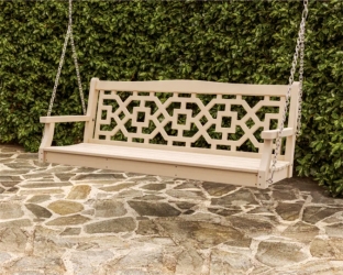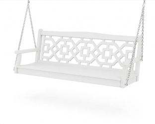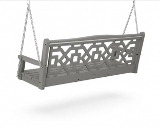 Balançoire extérieure 60 pouces Chinoiserie en plastique recyclé Polywood. Conçue avec 99% de matériaux plastique récupérés pour minimiser l'impact environmental et garantie 20 ans par le manufacturier renommé Polywood. Ces produits de qualité ont fait leurs preuves sur le marché depuis 1990. Ils sont à l'épreuve de taches, des écailles, la corrosion et des intempéries. Facile d'entretien et peuvent être lavés avec de l'eau et du savon lave-vaisselle. Disponible dans une variété de couleurs. Le prix affiché est pour ce modèle en gris. Prix peuvent variés selon la couleur.