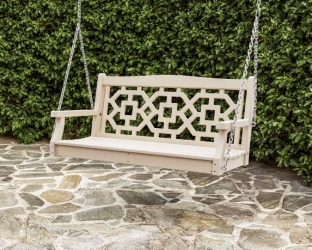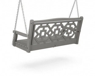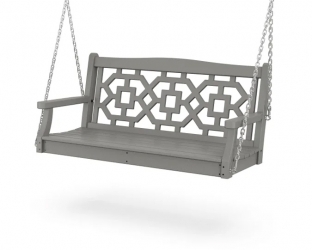 Banc balançoire de balcon extérieur 48 pouces Chinoiserie de plastique recyclé Polywood. Conçue avec 99% de matériaux plastique récupérés pour minimiser l'impact environmental et garantie 20 ans par le manufacturier renommé Polywood. Ces produits de qualité ont fait leurs preuves sur le marché depuis 1990. Ils sont à l'épreuve de taches, des écailles, la corrosion et des intempéries. Facile d'entretien et peuvent être lavés avec de l'eau et du savon lave-vaisselle. Le prix affiché est pour ce modèle en Gris. Prix peuvent variés selon la couleur.