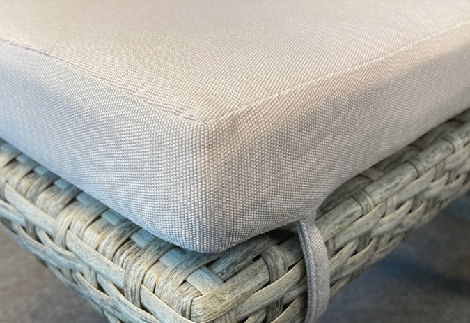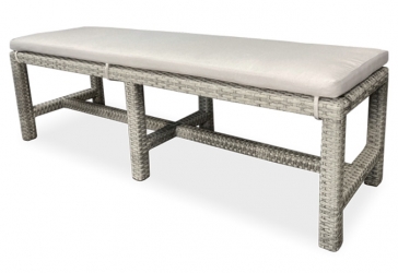 Banc Gris Stone pour ensemble de table à manger jardin. L'option simple, de style épuré si vous aimez simplifier les lignes de votre ensemble de table à dîner jardin. Inclut le coussin de couleur taupe et une garantie du manufacturier Ogni de 2 ans sur la structure en aluminium et le rotin synthétique durable, traité avec un additif pour protection contres les UV.
