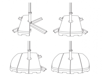 Base de parasol déporté conçu spécifiquement pour utiliser avec structure d'ancrage en forme de croix de nos parasols AG19, mais fonctionne aussi avec certains autres modèles et manufacturiers, à vérifier les dimensions.