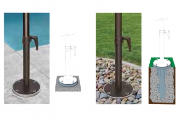 Base en acier insérable au sol pour installation et montage de parasol patio jardin, permet le boulonnage dans le sable, pelouse ou terre. Utilisable avec autres trousses appropriées optionnelles pour ces applications de montage de parasols déportés de plus grande taille ou les plus petits parasols de marché avec adapteur Code : OTUM AC MNT MK STEM ( voir en image en option ). Aide à économiser de l'espace de pieds en dessous de votre table ou surface de montage. Inclut boulons et ancrages pour boulons. Autres boulons et trousses de montages vendues séparément. Voir produits suggérés ci-dessous pour montage sur différentes surfaces.