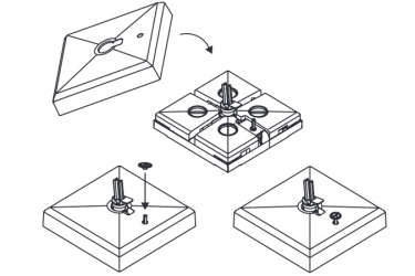 Base roulante pour parasol déporté AKZ de Treasure Garden. Facile à défaire et vider pour entreposage. Le couvercle est amovible, ainsi que les 4 conteneurs de poids, remplissable d'eau ou de sable.