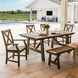 Chaise à dîner extérieure Polywood avec appuis-bras fabriquée en plastique recyclé de teinte Tech. Conçue avec 99% de matériaux plastique récupérés pour minimiser l'impact environmental et garantie 20 ans par le manufacturier renommé Polywood. Ces produits de qualité ont fait leurs preuves sur le marché depuis 1990. Ils sont à l'épreuve de taches, des écailles, la corrosion et des intempéries. Facile d'entretien et peuvent être lavés avec de l'eau et du savon lave-vaisselle. Le prix affiché est pour ce modèle en Brun Teck. Prix peuvent variés selon la couleur.