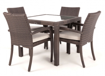 La chaise de jardin extérieure Tecla est conçue pour s’harmoniser parfaitement avec tous nos modèles de tables. En plus d’être esthétiquement moderne, elle est également très résistante en raison des matériaux de haute qualité utilisés. En effet, sa structure est composée d'aluminium, un matériel reconnu pour résister à la rouille. Cette chaise de jardin est idéale donc pour les températures québécoises. Les coussins standards pour les chaises sont de couleur taupe (autres couleurs sont disponibles avec ajout de prix selon matériel et disponibilité). Garantie de 2 ans sur la structure et sur le rotin synthétique.