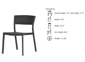 Chaise empilable extérieure en acier inoxydable et résine pour table patio. Fabriquée avec une structure en acier inoxydable et résine. Durable, robuste et fiable, incluant une garantie limitée de 10 ans sur la structure et 3 ans sur le rotin synthétique et résine.