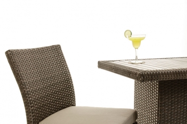 La magnifique chaise de jardin moderne Sofia est conçue pour utilisation extérieure. Ce modèle de chaise porte un accent d'aluminium brossé aux bases des pattes, qui lui donne un style très unique. Les chaises Sofia sont facilement empilables pour un rangement pratique. Vous susciterez l’envie chez tous vos invités avec un ensemble de jardin complet signé Ogni. Les coussins standards pour les chaises sont de couleur taupe (autres couleurs sont disponibles avec ajout de prix selon matériel et disponibilité). Garantie de 2 ans sur la structure et sur le rotin synthétique. Tel que démontré sur les photos, ces chaises sont empilables pour le rangement, par contre le prix est unitaire.