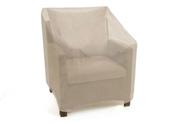 Housse de chaise jardin fabriquée en vinyle de qualité bien résistant pour mieux protéger votre chaises de patio des intempéries et bien garder vos coussins de chaise aux sec, prêt-à-utilisées en tout temps.