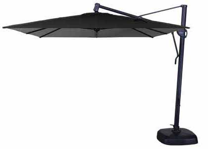 Beau grand parasol patio noir carré de 305 cm / 10 pieds avec ventilation sur dessus. Fabriqué par Treasure Garden, muni de tissu Sunbrella© avec garantie de 5 ans contre la décoloration du tissu et 2 ans sur la structure en aluminium robuste. Inclut une housse protectrice pour couvrir le parasol. Ce modèle est facile à régler et incliner avec articulation et manivelle qui exigent très peu d'effort à utiliser. Équipé d'une tige en aluminium très robuste. Idéal pour le bord de la piscine au dessus de votre ensemble de causeuses, votre terrasse ou jardin pour garder l'ombre sur votre ensemble de table à dîner patio. Présentement disponible en rouge, gris, noir, bleu et beige. Garantie de 2 ans sur la structure et 5 ans contre la décoloration du tissu d'excellente qualité de marque Sunbrella®. Plusieurs options de systèmes d'encrage sont disponible pour installation sur bois, sur béton, dans la terre ou pour utiliser avec base lourde vendue séparément.