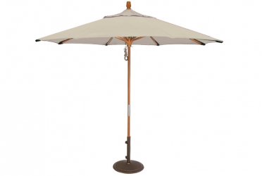 Parasol de jardin de 9 pieds avec structure en bois massif et tissu Beige Champagne. Conçu avec un système facile-d'utilisation à 4 poulies en aluminium qui ne rouillera pas et cordes pour ouvrir et fermer le parasol, ainsi qu'une tige centrale fixe en bois massif, non-inclinable de 1.5 pouces et hauteur totale de 101 pouces excluant base. Ce parasol inclut une garantie de 1 ans sur la structure et 4 ans contre la décoloration du tissu de marque O'Bravia de Treasure Garden. Une base de 50 lbs minimum est recommandée pour l'utilisation avec ce modèle. Base vendues séparément.