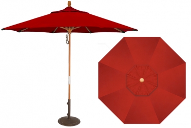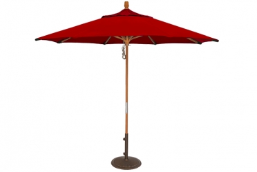 Parasol de jardin de 9 pieds avec structure en bois massif et tissu Rouge. Conçu avec un système facile-d'utilisation à 4 poulies en aluminium qui ne rouillera pas et cordes pour ouvrir et fermer le parasol, ainsi qu'une tige centrale fixe en bois massif, non-inclinable de 1.5 pouces et hauteur totale de 101 pouces excluant base. Ce parasol inclut une garantie de 1 ans sur la structure et 4 ans contre la décoloration du tissu de marque O'Bravia de Treasure Garden. Une base de 50 lbs minimum est recommandée pour l'utilisation avec ce modèle. Base vendues séparément.