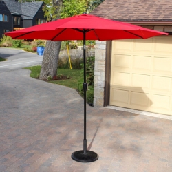 Parasol de jardin HRK rouge 9 pieds. Base vendue séparément. Plusieurs options de bases lourdes sont disponibles selon vos besoins.