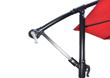 Ce modèle de parasol de jardin déporté permet un placement facile sans encombrement par dessus une table à dîner extérieur, un ensemble de causeuse ou bien une série de chaises longue.