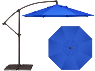 Parasol de jardin octogonal décentré 9 pieds bleu cobalte AG3 de marque Treasure Garden avec un an de garantie sur la structure en aluminium robuste et 3 ans contre la décoloration de la toile en tissu de renommée Obravia. Plusieurs options de bases à pesées lourdes sont disponibles selon vos besoins et vendues séparément.