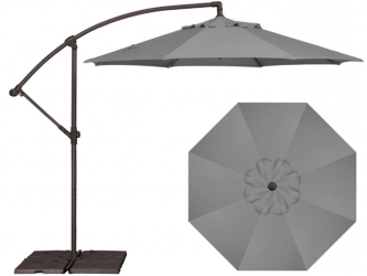 Parasol de jardin octogonal décentré 9 pieds gris AG3 de marque Treasure Garden avec un an de garantie sur la sturcture en aluminium robuste et 3 ans contre la décoloration de la toile en tissu de renommée Obravia. Plusieurs options de bases à pesées lourdes sont disponibles selon vos besoins et vendues séparément.