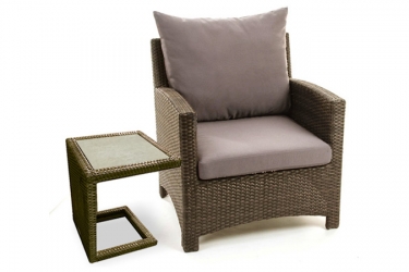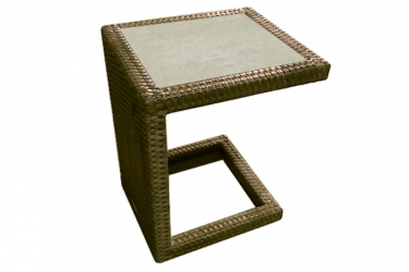 Petite table d'appoint extérieure au ton Brun Java pour côté de chaise longue. Pratique, légère et bien conçue en aluminium et poly-rotin protégé contre les effets UV du soleil, cette table d'appoint extérieure est parfaite pour utiliser avec votre chaise longue. Vous pourrez y déposer votre cocktail et votre livre lorsque vous prenez votre grand soleil du midi en toute relaxation. Elle est munie d'une surface de céramique d'aspect de pierre ardoise grise.
