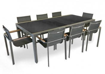 EN INVENTAIRE !!! Longue table à dîner extérieure en aluminium durable. Ceux-ci sont des modèles de plancher avec légers défauts du manufacturier en promotion spéciale. Permet d'accommoder 8 personnes en utilisant des chaises de modèle Diagonal ( chaises vendues séparément ). Fabriquée d'aluminium durable recouvert de fini en poudre-cuite qui ne rouillera pas et une surface de table en verre trempé. Une installation sur-place est requise pour ce produit avec prix relatif à la distance. Voir détails dans nos 4 magasins Palason.