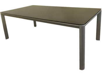 Table à dîner extérieure en aluminium gris foncé Palermo 6 places avec dessus en verre trempé noir