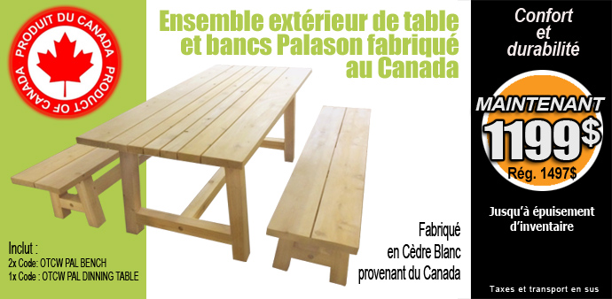 Table à diner extérieure en bois de cèdre blanc canadien