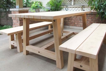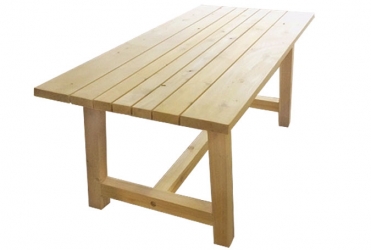 Une élégante et simple table conçue pour bonne résistance aux climats diverses nord américain. Cette table à dîner extérieure en bois de cèdre blanc canadien à la fois classique et contemporaine résistera bien aux intempéries, insectes et moisissure due aux propriétés naturelles de ce type de cèdre. Vous pouvez aussi la teindre, la vernir ou la peinturer. Le prix indiqué est pour la table seulement. Vous pouvez la jumeler avec des chaises en aluminium, des chaises en bois ou des bancs, vendus séparément.