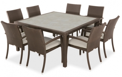 Table à dîner patio carrée Nico Brun Java 8 places avec surface en verre trempé aspect céramique