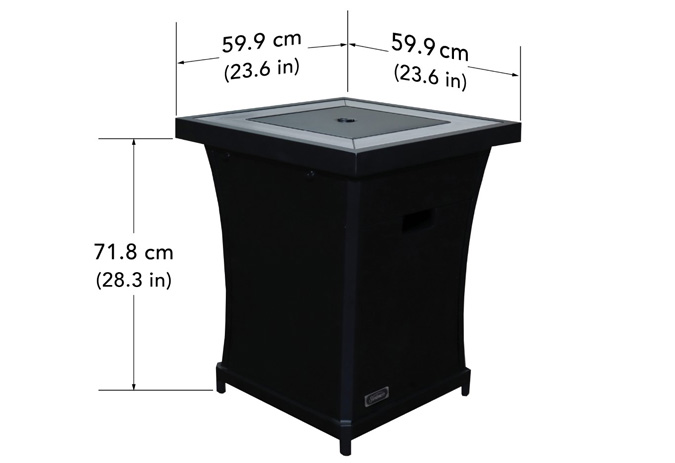 Table à feu foyer extérieur Dunham verticale au fini noir. Fabriquée avec une structure en aluminium qui ne rouillera pas et un élément en acier inoxydable. Peut générer jusqu’à 50,000 BTU. Fonctionne en moyenne 8 heures de temps sur un remplissage de bonbonne standard de 9.1 kg ( 20 lbs ). Bonbonne de propane exclut.