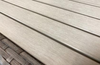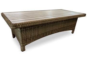 Table café extérieure rectangulaire en rotin brun synthétique et surface simili Teck