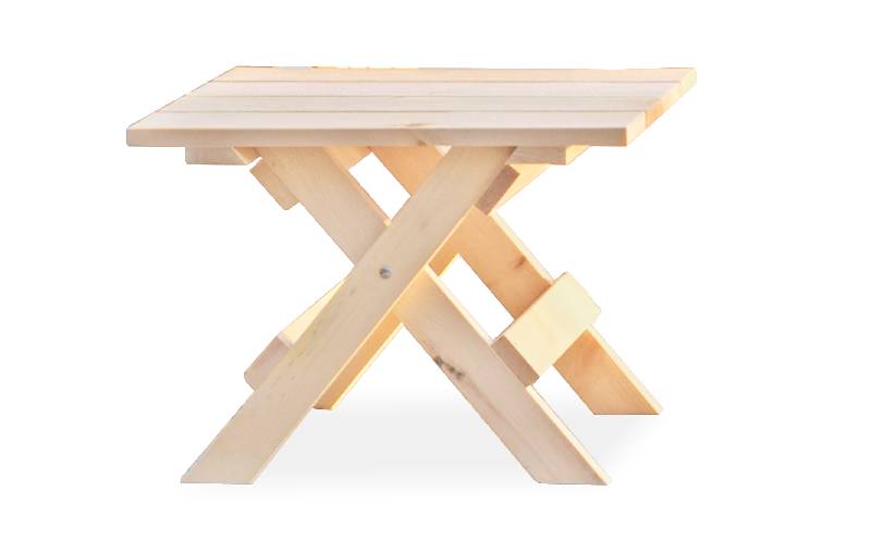 Table carrée 24 pouces pour chaise Adirondack de chalet fabriquée au Canada en bois de Pin de Est Canadien d'Ontario. Bois brute sablé, prêt à assembler, peintre, teindre ou vernir. Toutes quincaillerie pour assemblage est incluse, triple-plaquées au dichromate de zinc et les pièces en bois sont pré-sablées et pré-percées pour assemblage. Sans finition ou scellant, ce produit vieillira avec un ton gris rustique. Dimensions: 24" P x 24 " L x 19" H. Une chaise et un repose-pieds en bois de pin sont offerts en option avec ajout de prix.