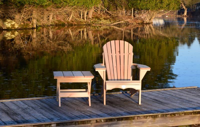 Table carrée 24 pouces pour chaise Adirondack de chalet fabriquée au Canada en bois de Pin de Est Canadien d'Ontario