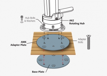 Trousse d'installation sur bois pour parasol jardin Treasure Garden AKZ de 10 ou 13 pieds. Cette trousse d'accessoires inclut les boulons et plaques métalliques pour effectuer une installation plus robuste et plus sécuritaire.d'un parasol sur une terrasse, patio ou bord de piscine avec surface en bois.